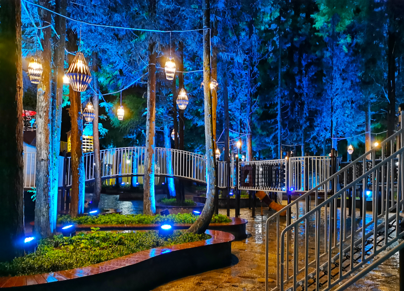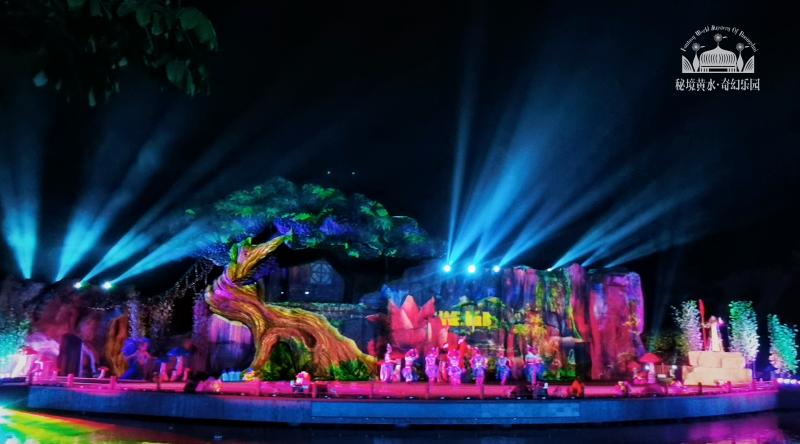 奇幻光影秀:走进奇幻乐园,一条小道延伸至远方,小道两边都是充满奇幻色彩的建筑。加上灯光与场景的布置,给游客呈现了一个奇幻森林。