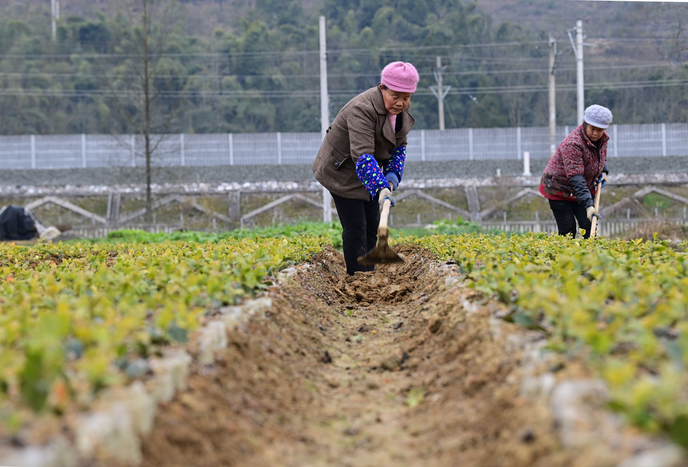近年来,酉阳立足资源优势,因地制宜发展油茶产业36.3万亩,联结带动油茶产业经营主体达115家,受益农户7万余户。2月25日,在泔溪镇太平村,村民正忙着管护油茶苗。(融媒体中心记者冉川 摄)
